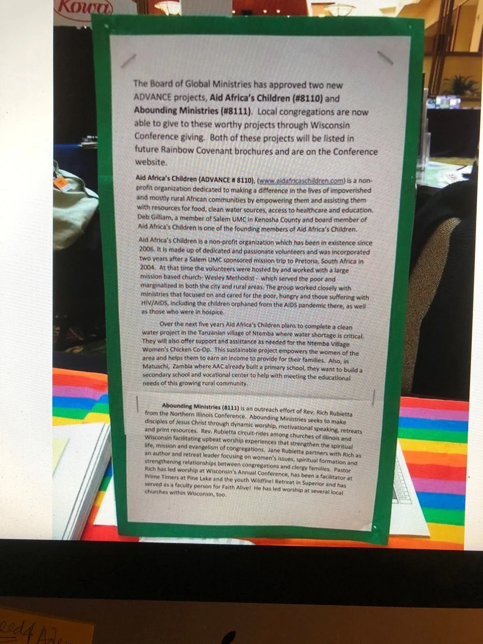 Aid Africa’s Children’s was approved by the Board of Global Ministries of United Methodists Church to be an official fund recipient for selected "worthy projects” at their annual official United Methodist Conference.